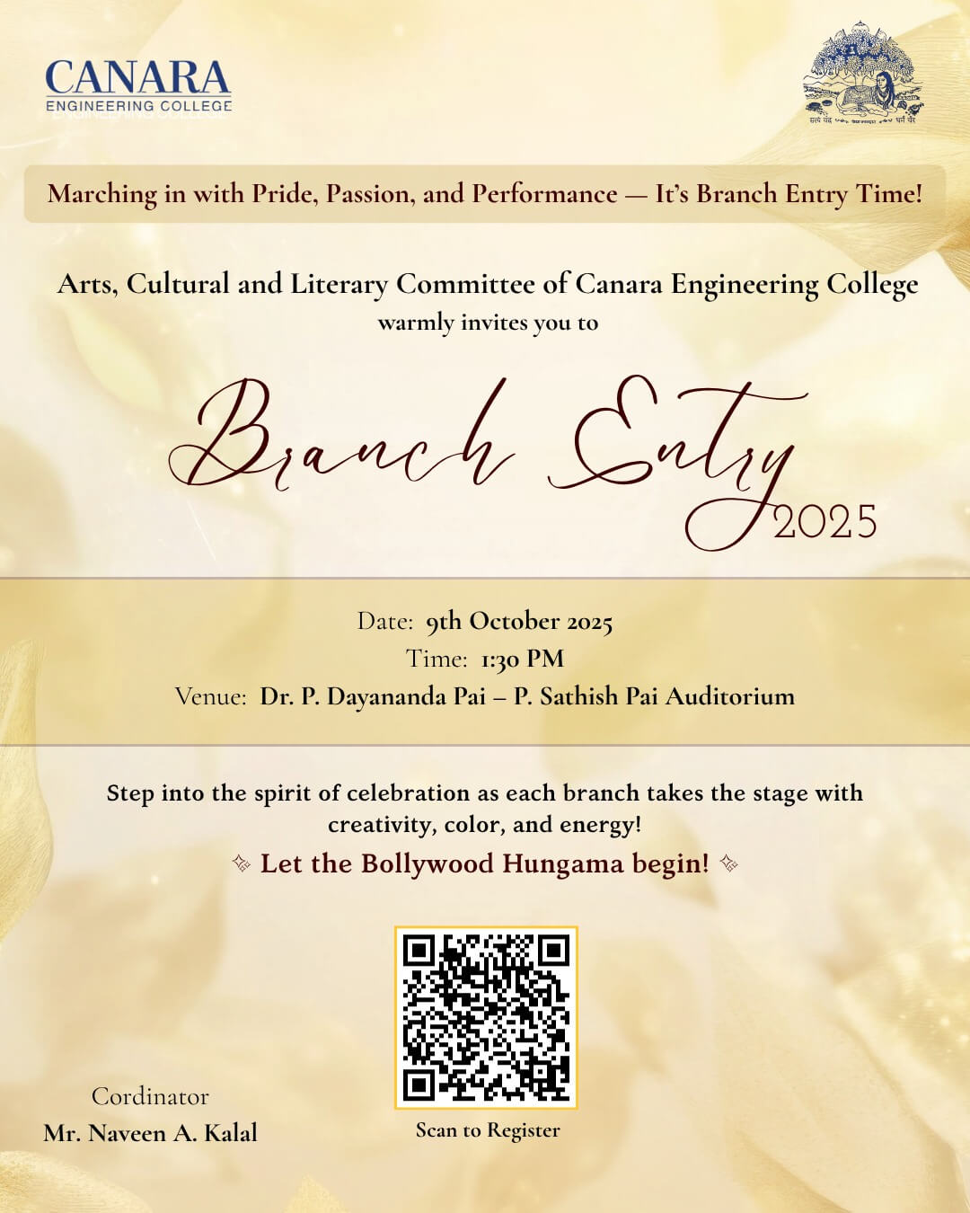 The college organized the Branch Entry 2025 event to welcome the third-semester students into the department. The event featured active participation from students, including Anvesha Shetty, Prashanth Naik, Shivani Naik, Nidhi, Shreya, Sahana, Megha, Prajna, Pranamya, Kavya, Jayalakshmi, Durgashree, Navya, Srushti, Naman, Nihal, Rishith, Harshith, Shravan, Navneet Bhat, and Sinchana Vasanth Naik. They performed a vibrant dance, adding energy and excitement to the celebration. Faculty members and peers appreciated the performance, which reflected creativity, teamwork, and enthusiasm. The event successfully fostered a sense of belonging, unity, and motivation among students. It provided an engaging platform for interaction, cultural expression, and the celebration of new beginnings within the department. |