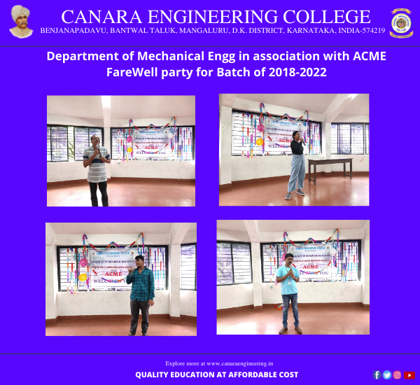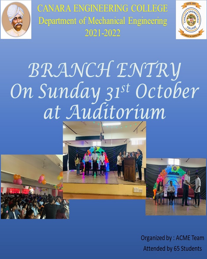 Mechanical Engineering branch at Canara Engineering College was started in the year 2004 with an intake of 60. Mechanical Engineering is one of the broadest engineering disciplines.