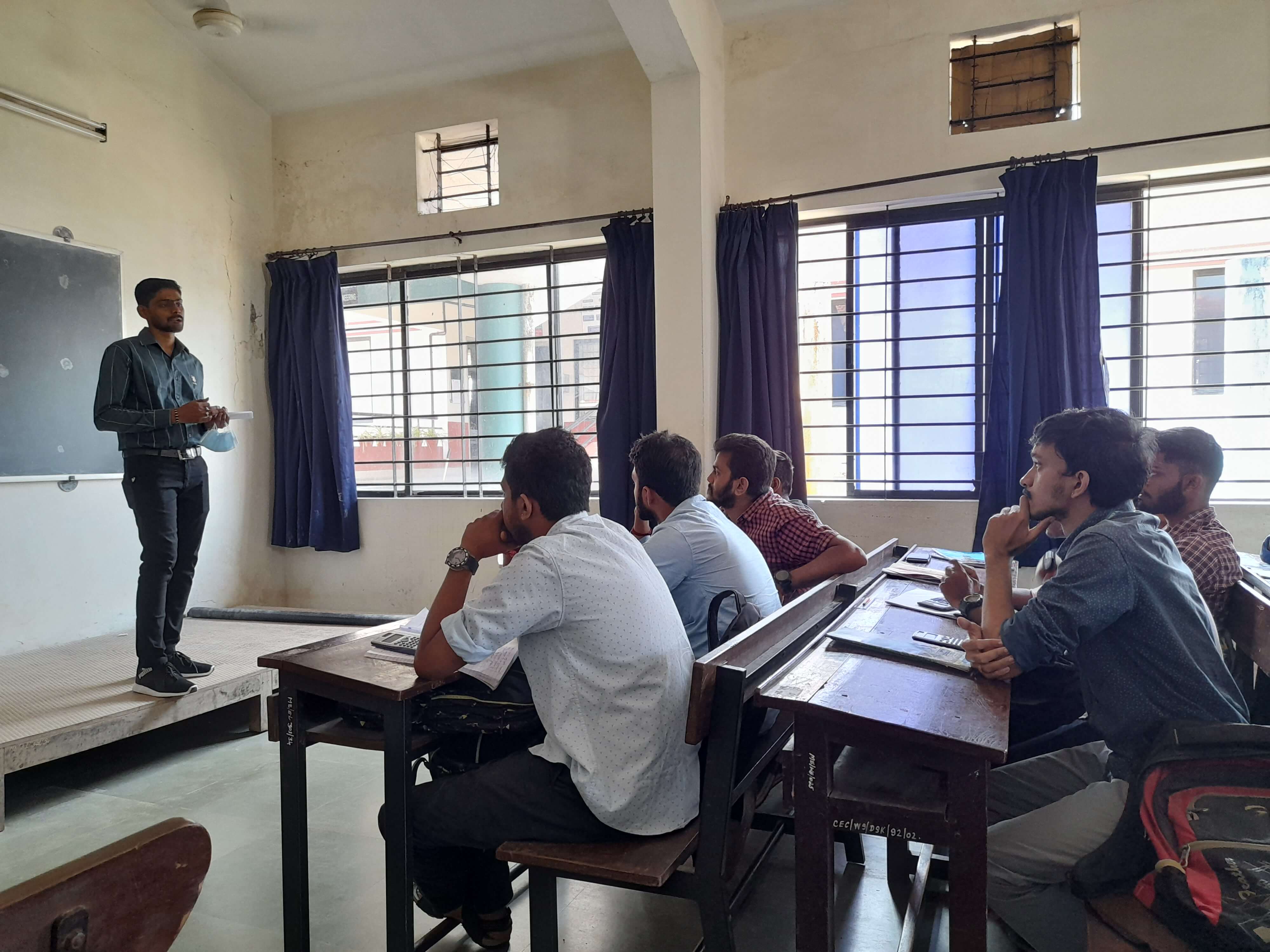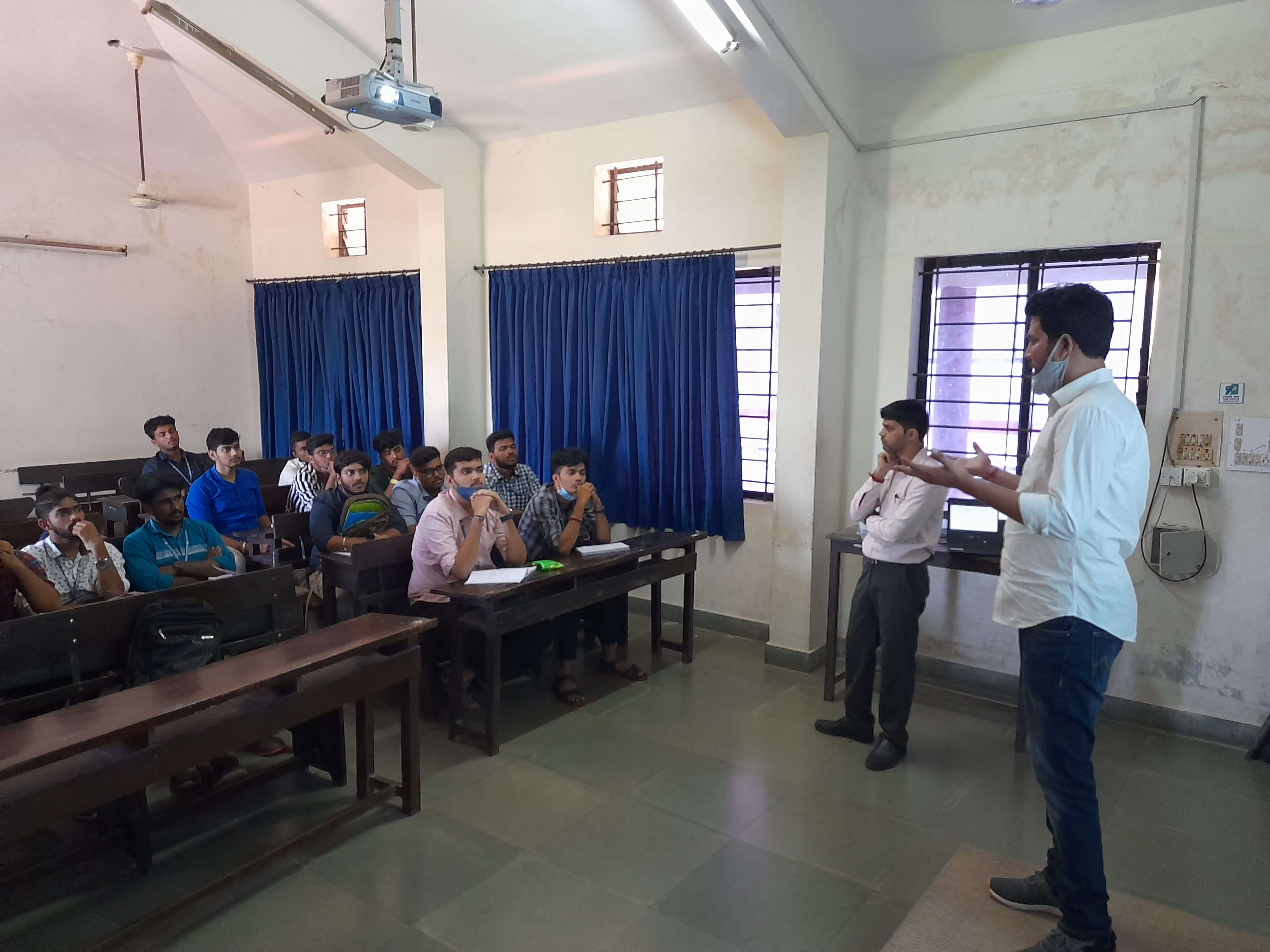 He had interacted with Pre-final year students and discussed about company profile and products manufacturing. He got that job through 'Job fair',hence he explained about selection procedure in off-campus method. He stressed about importance of some engineering subject related to his field. |