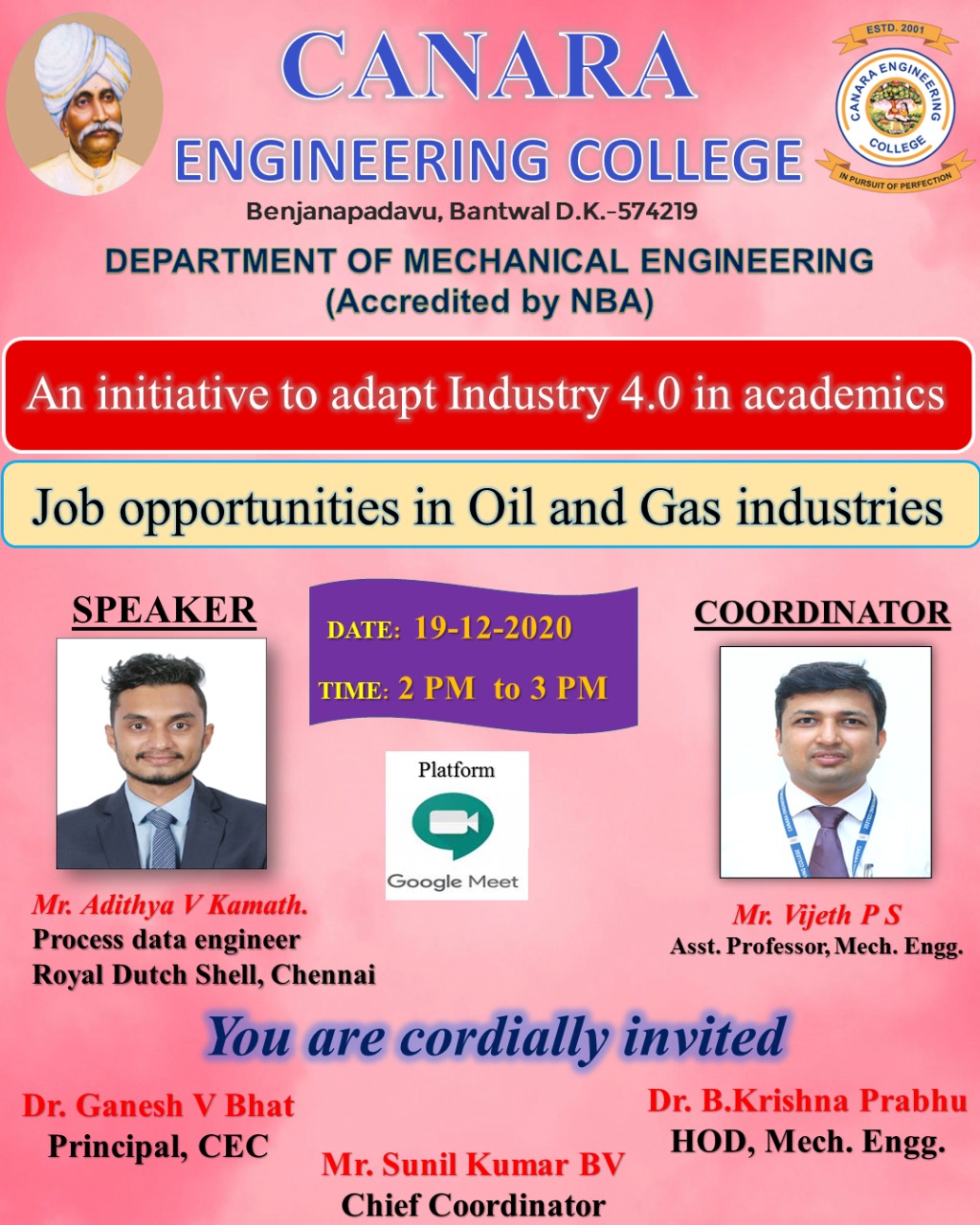 | Alumni Talk on Role of mechanical engineers in Oil and Gas industries (03-10-2020) |