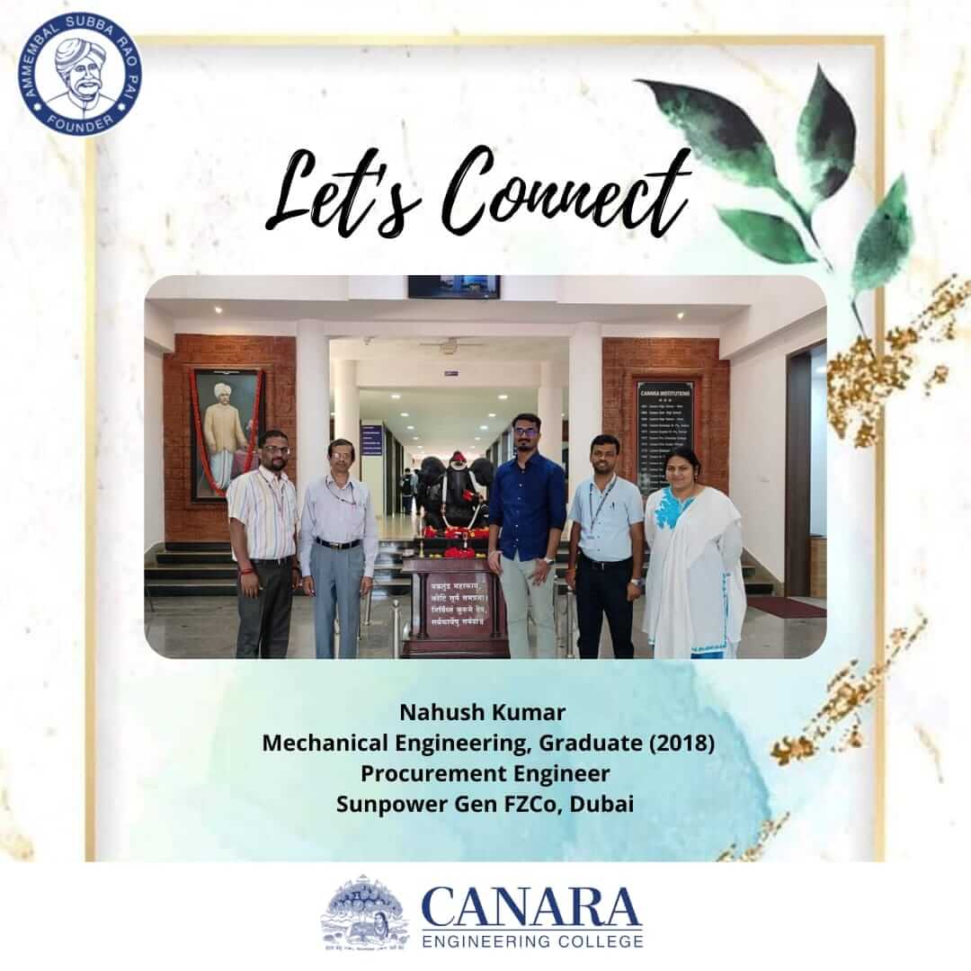 Our alumni Mr.Amithash Prabhu was graduated from the mechanical engineering in the year of 2012. Since 2012 he was working as a HVAC engineer in Abroad. Today he was interacted with our final year mechanical students and suggested to get basic knowledge about engineering, importance of conducting of experiments in various labs. He was explained about present scenario of job opportunities in Abroad. He told about the importance of NBA and benefits of NBA accredited colleges. |