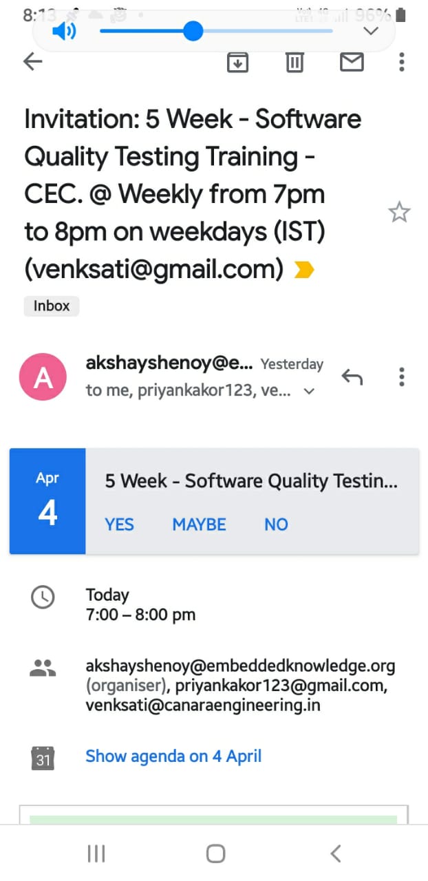 The Program was organised by the department of mechanical Engineering for final year students. Eleven students from final year attended t he training and got the knowledge of software testing. the training module included, SDLC models, levels and types of testing, testing techniques, and agile methodologies. |